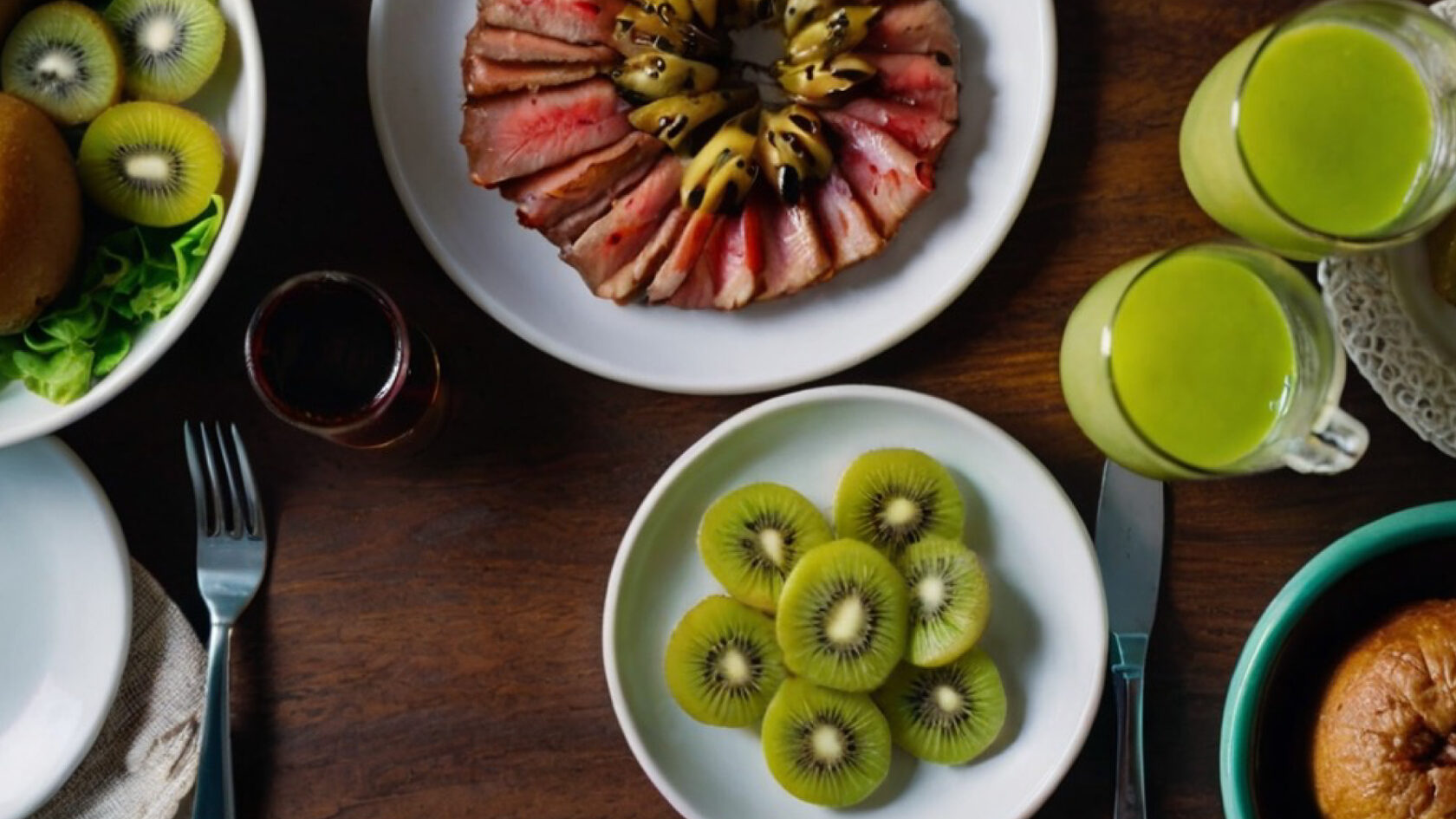 - Свинина — фруктовый соус из киви добавляет свежести.
